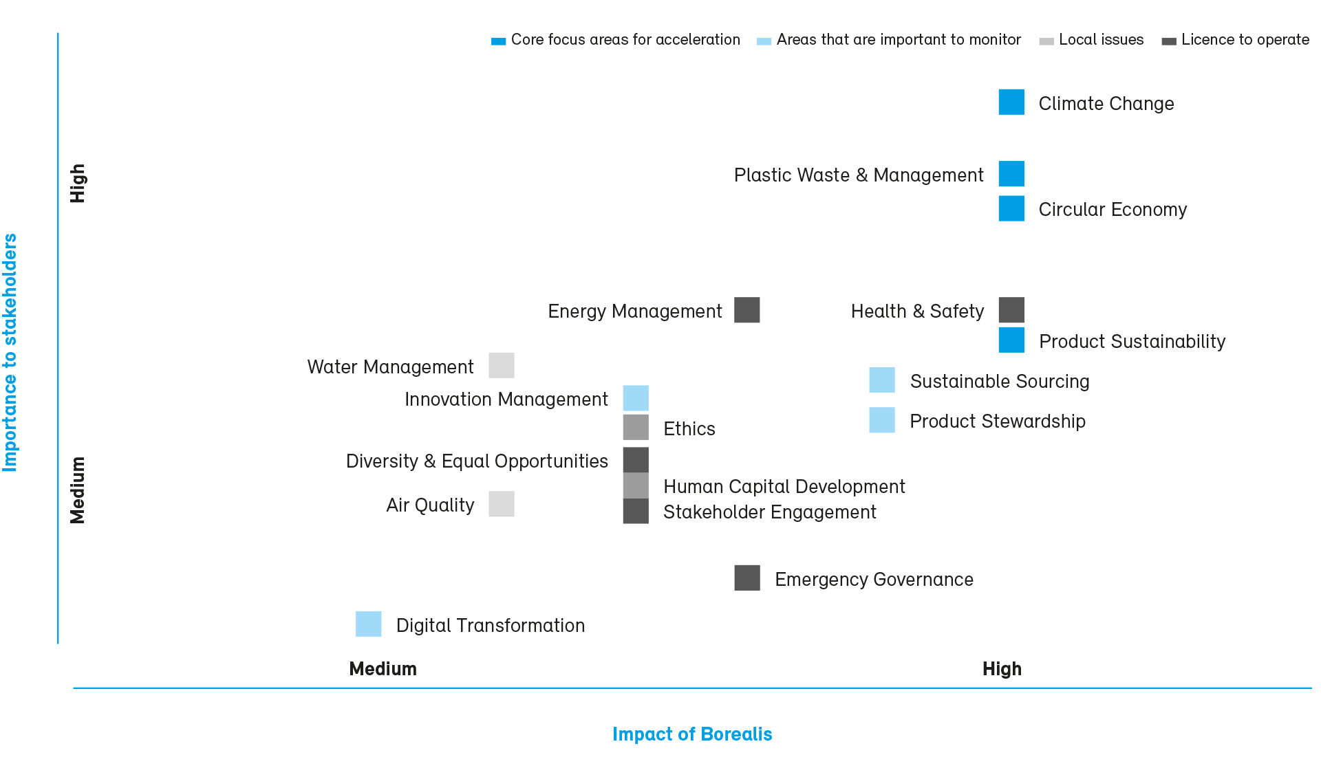 As a result of the assessment, Borealis developed a Sustainability Materiality Matrix, based on four levels of response: