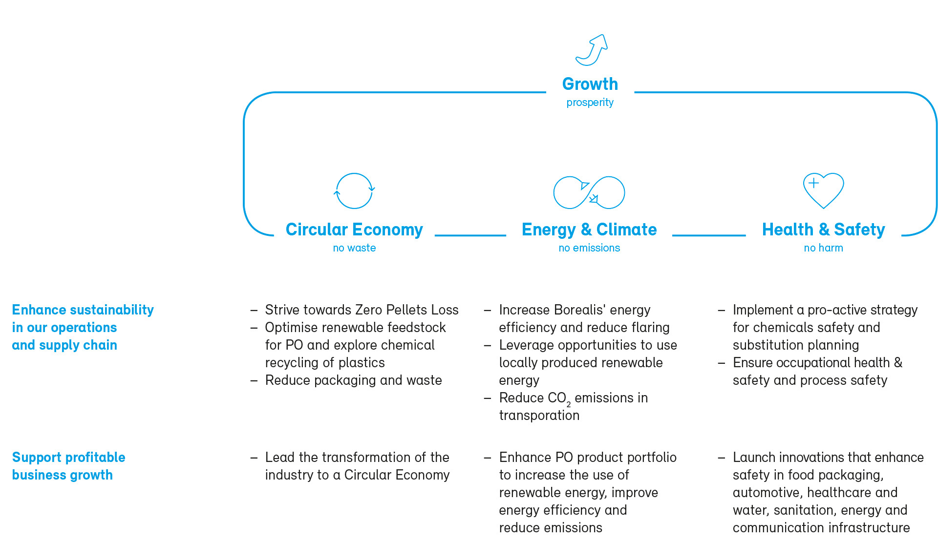The following four topics were identified as the most important to Borealis and its stakeholders and are defined as “Core focus areas for acceleration”.