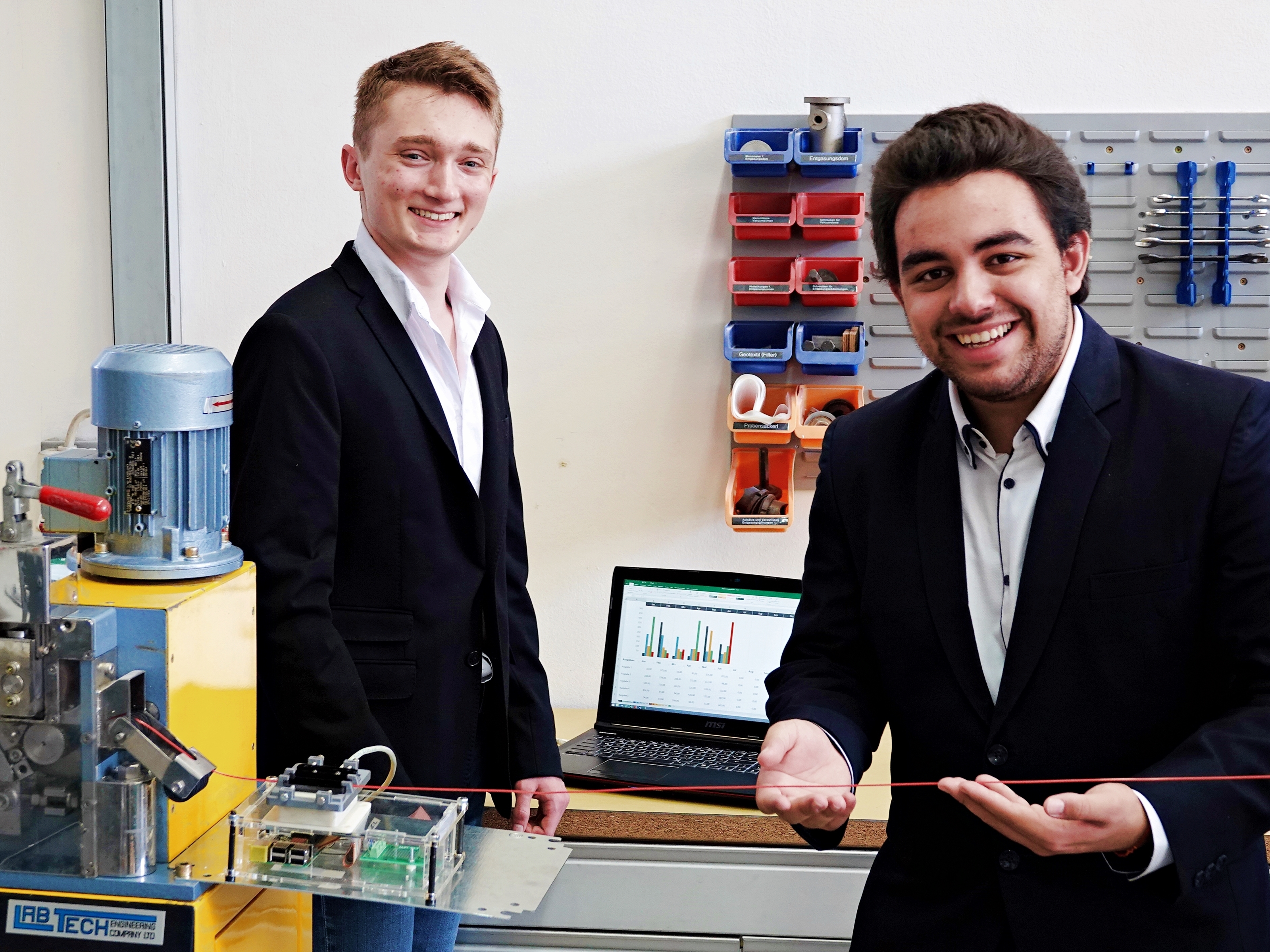 Foto: © GFKT. image. 5.15mbFoto: Projektteam bei der Farbmessung eines Kunststofffilaments (v.l.n.r.: Maximilian Hartmann, Viraj Rath), 1.Platz