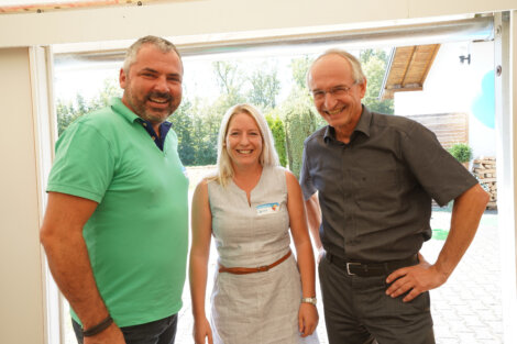 Von links nach rechts: Michael Freutsmiedl zusammen mit Heidi Prinz und Josef Jung beim Borealis Sommerfest im Sportheim Haiming.