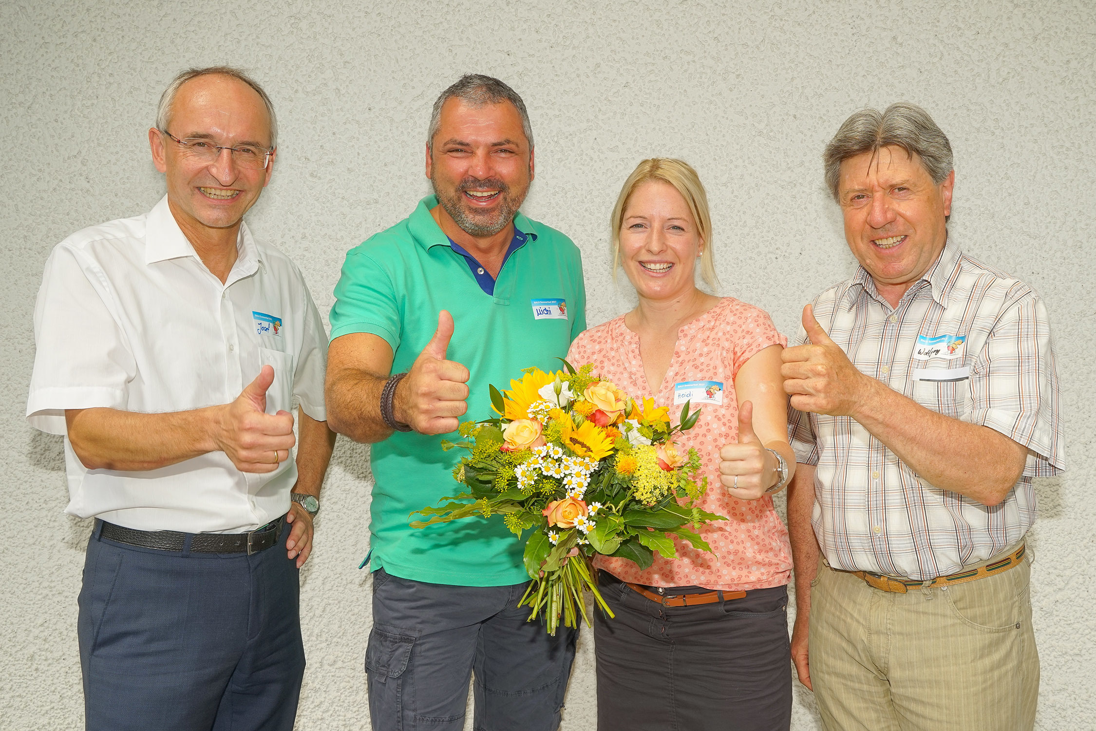 Von links nach rechts: Josef Jung zusammen mit Michael Freutsmiedl, Heidi Prinz und Wolfgang Beier beim Borealis Sommerfest im Sportheim Haiming.