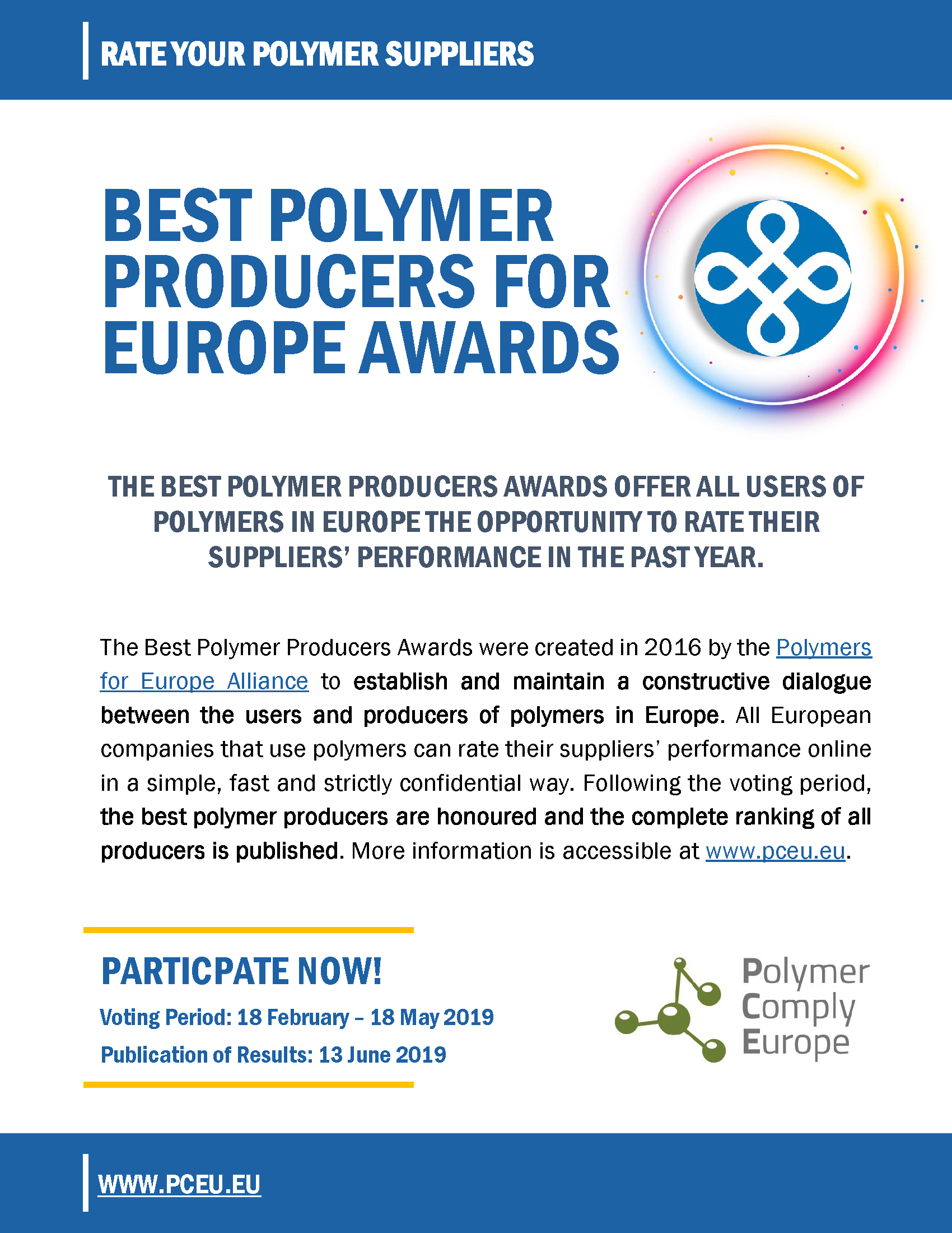The awards were created in 2016 by the Polymers for Europe Alliance to establish and maintain a constructive dialogue between the users and producers of polymers in Europe.