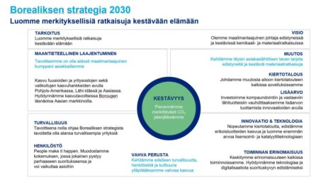 Borealiksen 2030 strategia vahvistaa, että kestävyys on kaiken nykyisen ja tulevan toiminnan ydin. Strategiassa asetetut kestävän kehityksen tavoitteet kattavat Borealiksen polyolefiini- ja hiilivetyliiketoiminnan kasvihuonekaasupäästöt, energiankäytön, soihdutuksen sekä kiertotaloustuotteet ja -ratkaisut.