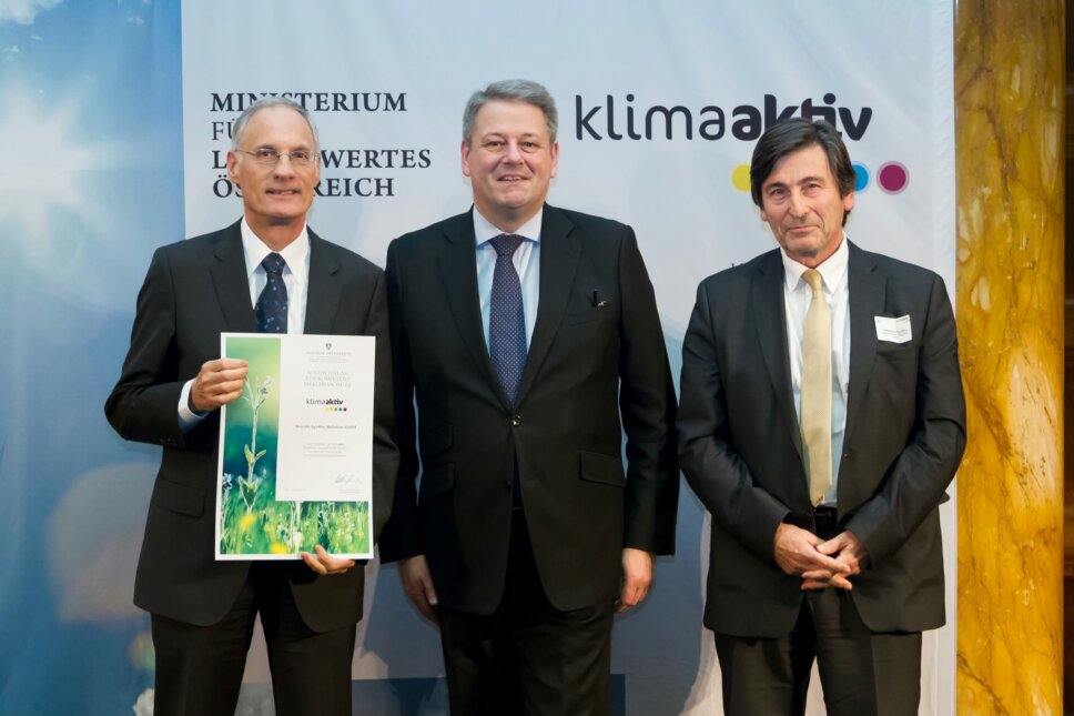 Im Rahmen der klimaaktiv Fachtagung „Steigerung der Energieeffizienz in Industrie und Gewerbe“ im Dezember 2014 in Wien prämierte Bundesminister Andrä Rupprechter insgesamt 25 Unternehmen gemeinsam mit ihren Energieberatern für hohes Engagement im Bereich der betrieblichen Energieeffizienz.