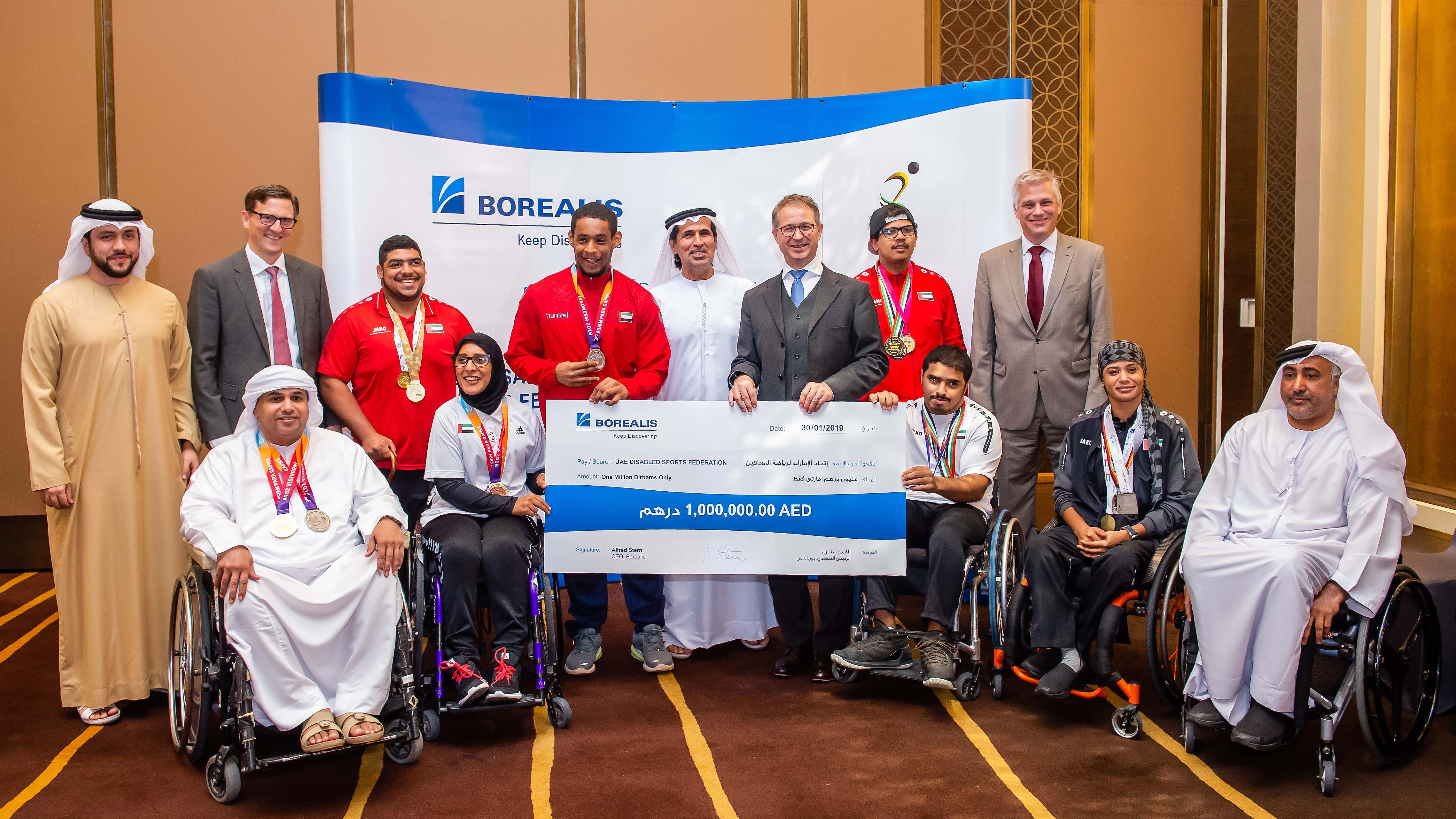 “We are grateful for the years of continuous support which has come from joint cooperation,” says H. E. Mohammed M. Fadhel Al Hameli, Chairman of the UAE Disabled Sports Federation. “Borealis Social Fund support will enable the athletes to continue their preparation journey for the Paralympic Games in Tokyo in 2020. Because it is a great honour for us all to be part of this event, we thank Borealis for their commitment to the community, and their generosity towards the athletes.”