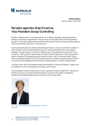 Borealis, a leading provider of innovative solutions in the fields of polyolefins, base chemicals and fertilizers, announces the appointment of Anja Krusel as Vice President Group Controlling effective 1 May 2015. Anja Krusel succeeds Executive Board member Mark Tonkens, who assumed the position of Chief Financial Officer (CFO) as of 1 November 2014.