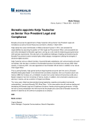 Borealis announces the appointment of Katja Tautscher (49) as Senior Vice President Legal and Compliance as well as Human Resources (ad interim), effective 1 March 2021.