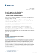 Borealis announces the appointment of Sandra Mueller as General Counsel and Vice President Legal and Compliance, effective 1 June 2022.