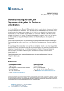 Am 10. Juni 2022 wurde von Borealis AG (Borealis) die Absicht angekündigt, ein Squeeze-out-Angebot für Rosier SA (Rosier) zu unterbreiten. Nach der Genehmigung der Kapitalerhöhung von Rosier durch die außerordentliche Hauptversammlung am 16. Juni 2022 und dem tatsächlichen Abschluss dieser Kapitalerhöhung am 29. Juli 2022 stieg die Beteiligung von Borealis an Rosier auf 98,09%. Borealis bestätigt hiermit erneut ihre Absicht, ein Squeeze-Out-Angebot für Rosier zu einem Preis von 20 EUR pro Aktie gemäß dem belgischen Königlichen Dekret über öffentliche Squeeze-Out-Angebote zu unterbreiten.