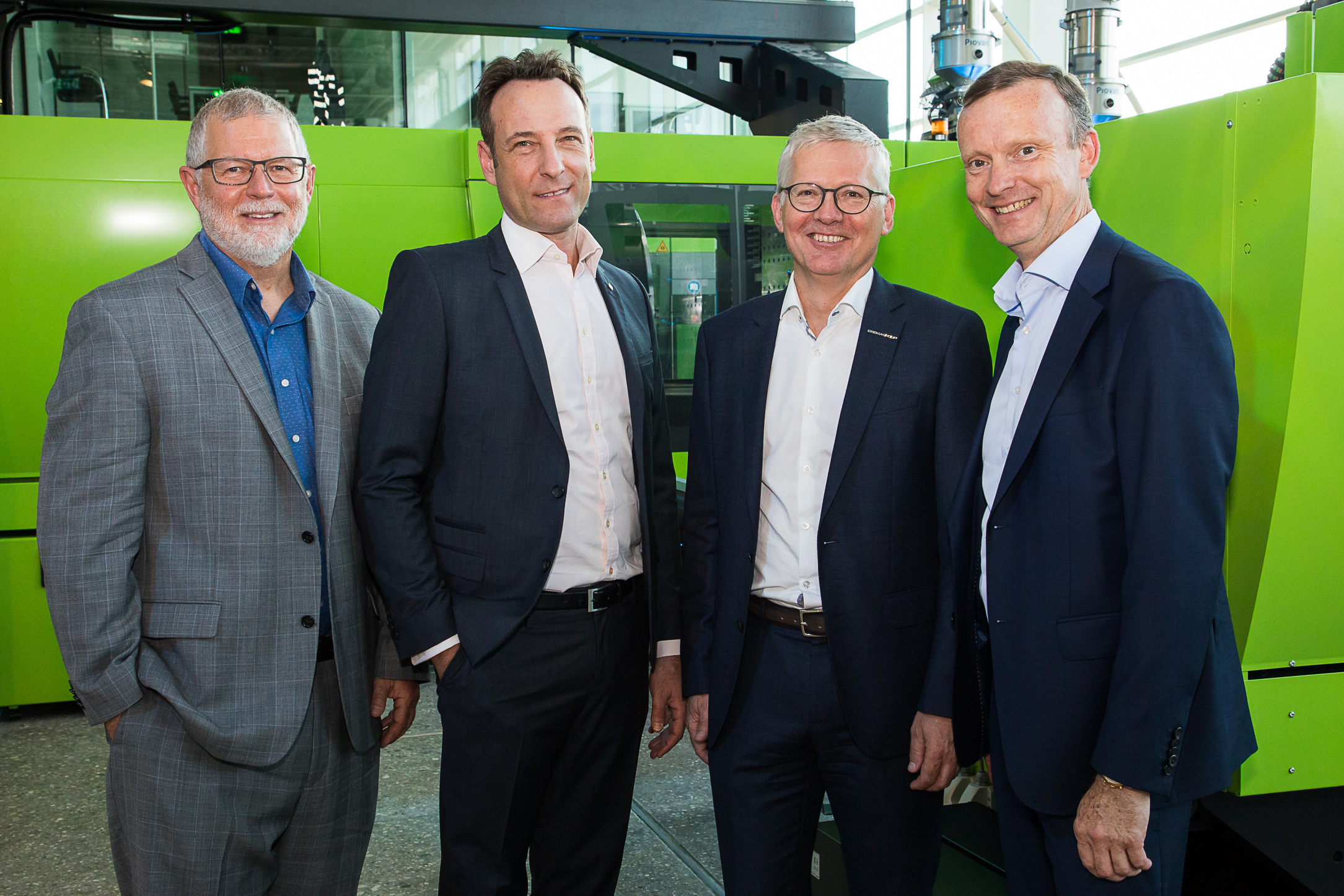 Photo: Daryll Harrison (NOVA Chemicals), Michael Pell (Borouge), Manfred Hackl (EREMA), Maurits van Tol (Borealis) (f.l.t.r.)