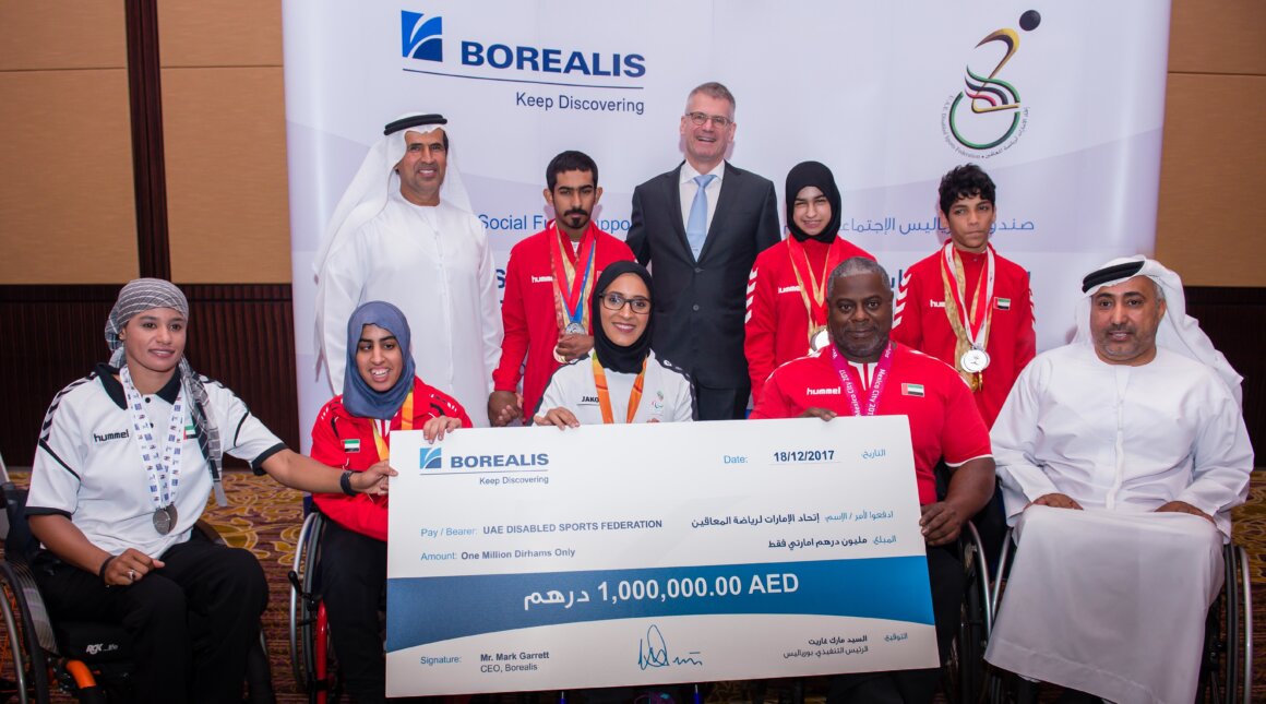 Borealis will support UAE organisations with AED 3 million in total, which will be presented to the Emirates Foundation, the UAE Disabled Sports Federation, and the Emirates National Schools. Borealis Chief Executive Mark Garrett handed over cheques to representatives of the respective organisations at a ceremony held in Abu Dhabi on 18 December 2017.