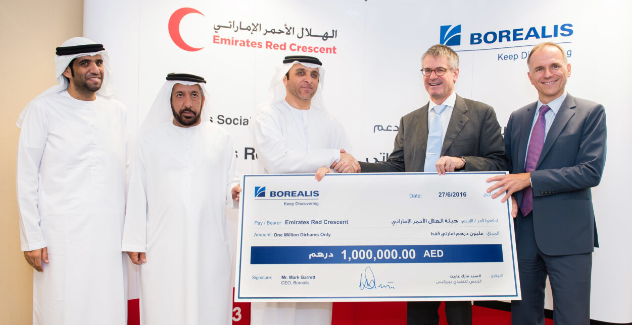 Borealis, a leading provider of innovative solutions in the fields of polyolefins, base chemicals and fertilizers, has announced the donation of AED 1 million to the Emirates Red Crescent (ERC) to support refugee relief efforts in Lebanon, Jordan and Iraq. The donation is provided by way of the Borealis Social Fund, which was launched in 2008 and is dedicated to enhancing social welfare.