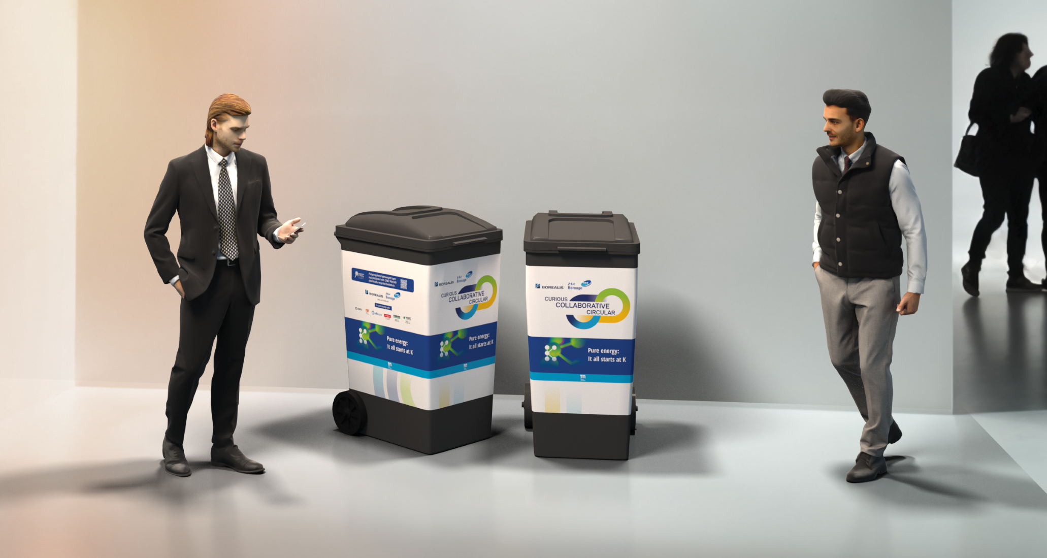 Illustration: Closing the loop: Sammelbehälter auf dem gesamten Messegelände der Messe Düsseldorf ermöglichen eine einfache und effektive Wiederverwendung.