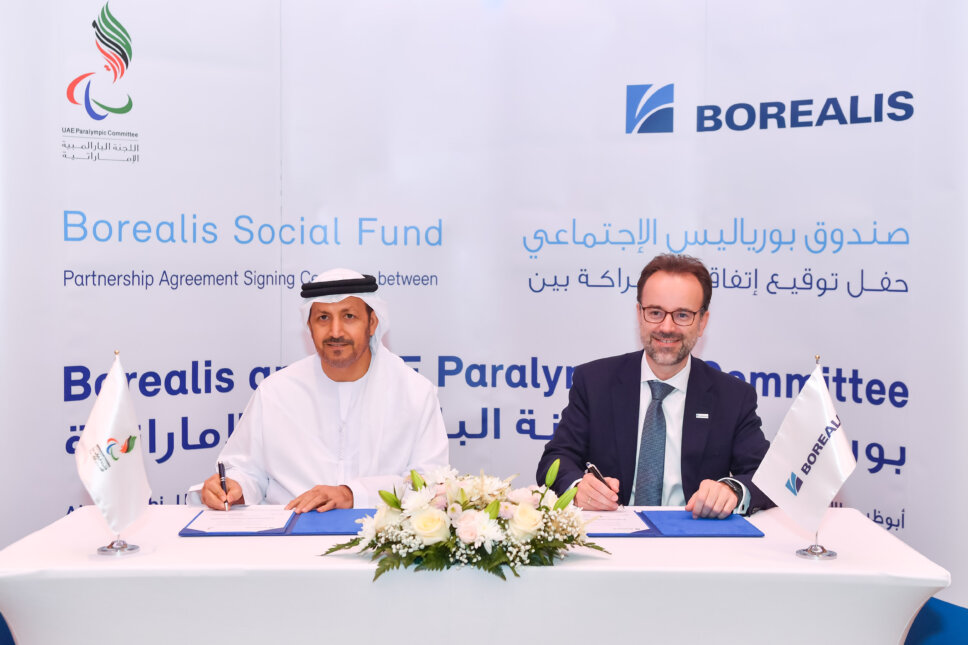 Partnership Agreement between Borealis and UAE Paralympic Committee signed by Thomas Gangl, Borealis CEO and H. E. Dr. Tariq Sultan bin Khadim, Vice President of the National Paralympic Committee