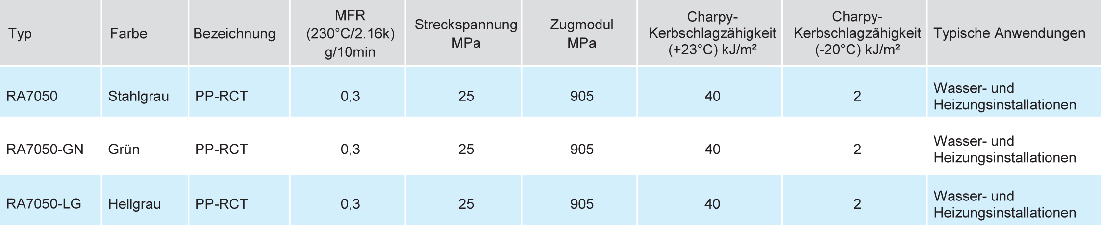 Der neue hellgraue Typ RA7050-LG ist ein voll PP-RCT-klassifiziertes Material.