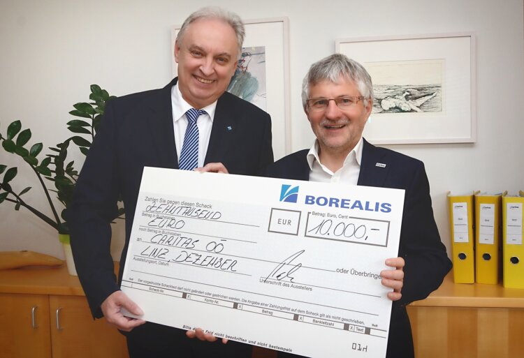 Im Anschluss an den Borealis Weihnachtsmarkt wurde der gesammelte Betrag von Borealis aufgerundet und von Hubert Puchner bei der Caritas Oberösterreich in Linz überreicht, wo er herzlich von Direktor Franz Kehrer empfangen wurde. „Wir freuen uns sehr über diese Unterstützung und bedanken uns bei allen Borealis Mitarbeiterinnen und Mitarbeitern für ihre Spenden. Unter anderem unterstützen wir damit die Lerncafes der Caritas OÖ. Dort erhalten Kinder, die ihre Hausaufgaben nicht ohne Hilfe bewältigen können und deren Eltern die Kosten einer Nachhilfe nicht aufbringen können, eine Unterstützung für ihre Schulausbildung, " ergänzt Franz Kehrer während des Besuchs.