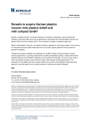 Borealis, a leading provider of innovative solutions in the fields of polyolefins, base chemicals and fertilizers, announces today that it has an agreement to fully acquire the German plastics recycler mtm plastics GmbH and mtm compact GmbH. This transaction is subject to regulatory approvals.