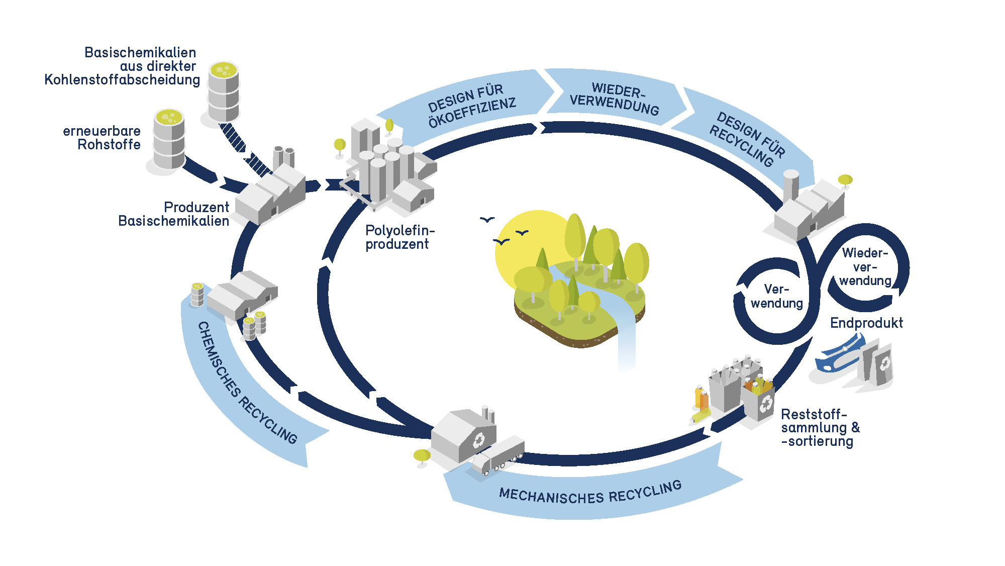 Abb:: Bild: Das integrierte Kaskadenmodell zeigt, dass mechanisches Recycling eine Schlüsselrolle in Borealis' Ansatz zur Realisierung der Kreislaufwirtschaft spielt.