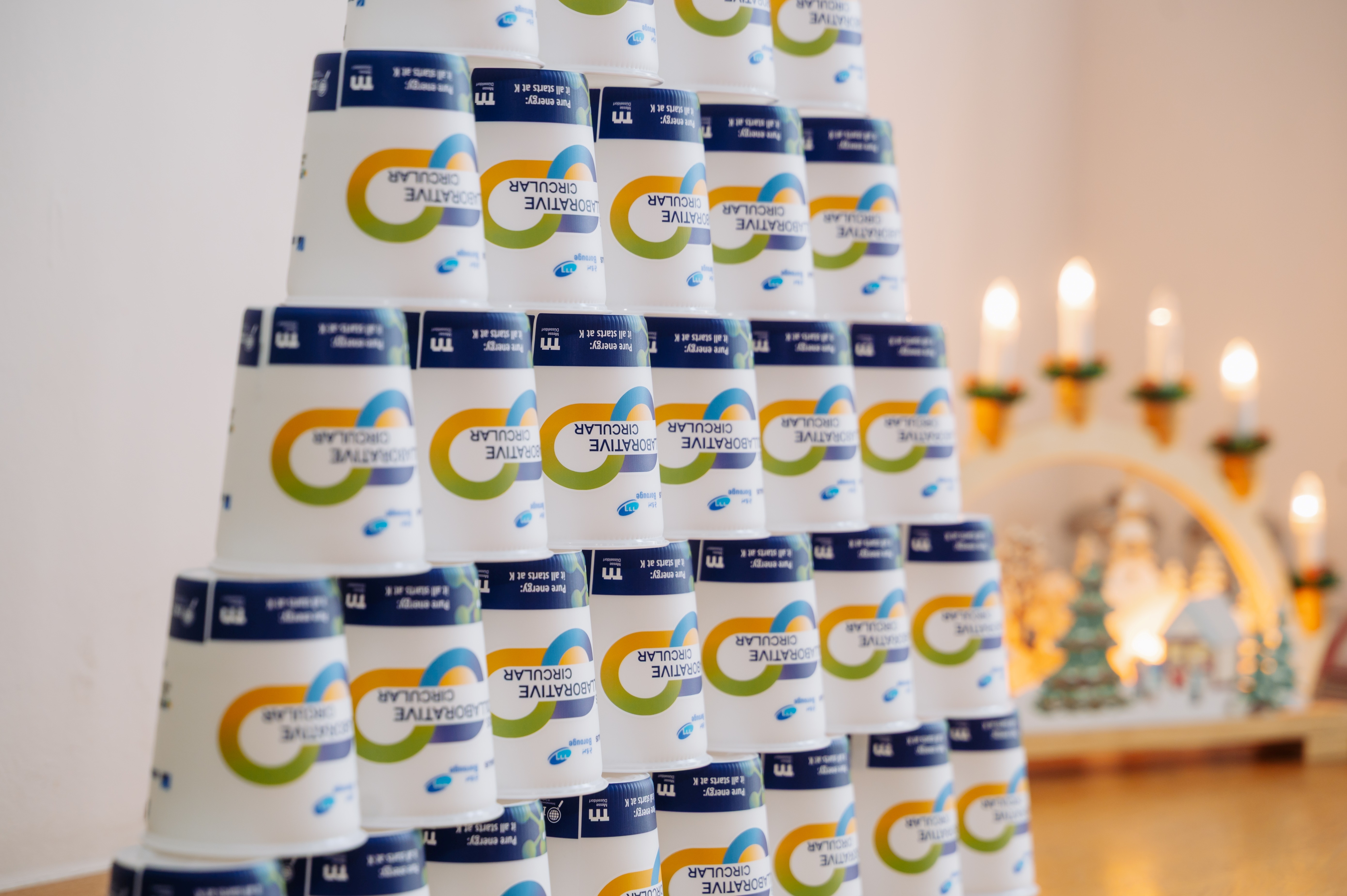Das Pilotprojekt umfasste 50.000 strapazierfähige, leichte Mehrwegbecher aus schäumbarem Polypropylen von Borealis, das unter Verwendung chemisch recycelter Rohstoffe aus der ReOil®-Technologie von OMV hergestellt wurde. Das Projekt wurde von einer breiteren Wertschöpfungskette unterstützt, zu der auch Beiträge von Bockatech, Faerch, MCC Global IML und ARBURG gehörten.