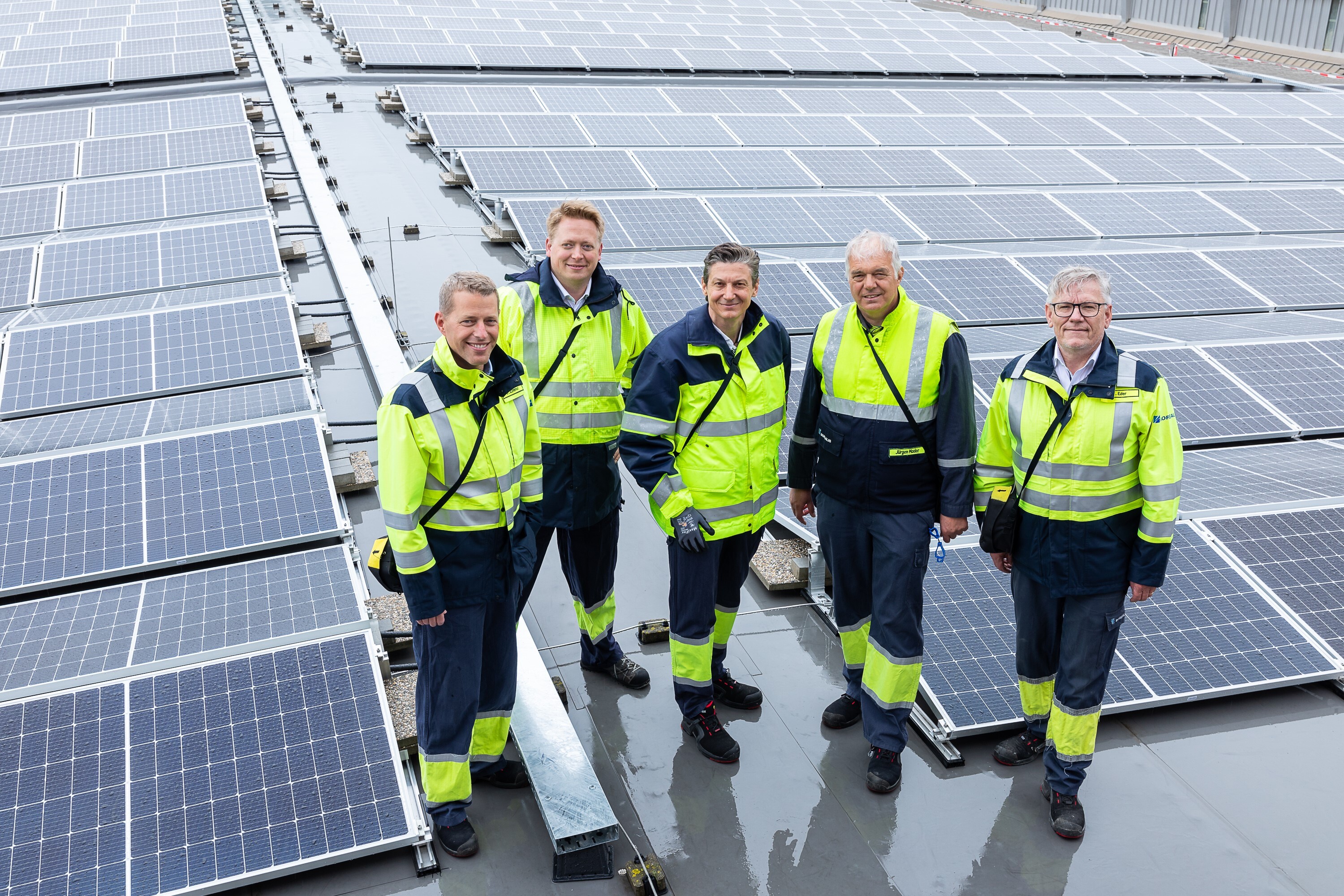 photo: The project team visits the newly installed rooftop photovoltaic systems (fltr): Georg Zimmer (Borealis), Christian Höfer, Martin Wagner (Verbund), Mader Jürgen and Eder Gerhard (Borealis).