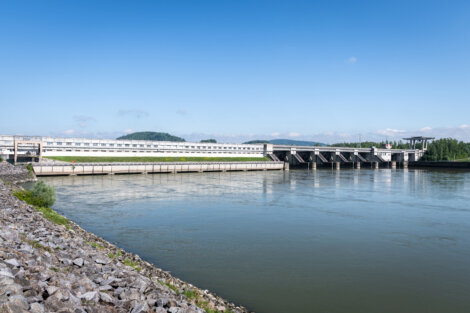 Photo: Hydropower plant in Aschach, Austria. VERBUND will supply power generated from two of its own Austrian hydropower plants on the Danube River to Borealis operations in Schwechat, Austria.