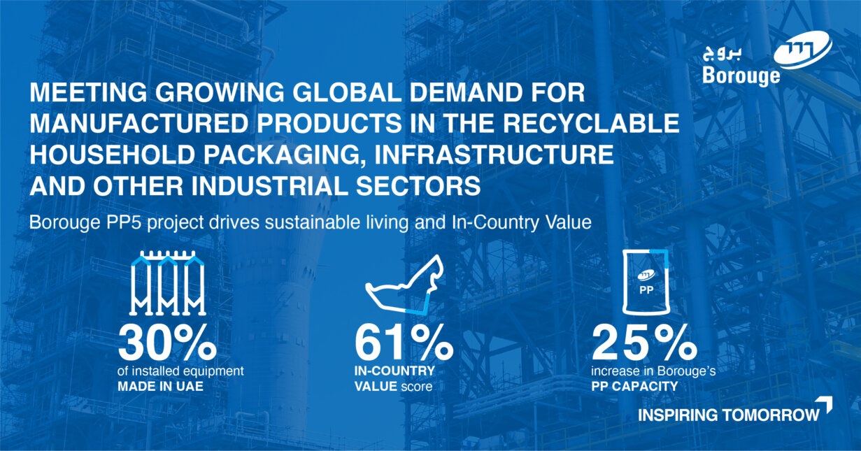 Hazeem Sultan Al Suwaidi, CEO of Abu Dhabi Polymers Company (Borouge) said: "This marks further progress on Borouge’s growth journey and the development of Ruwais into a dynamic, global hub for downstream activity, enabling the UAE's long-term industrial growth and economic diversification. Our PP5 unit, will enable us to meet our customers’ increasing demand for polypropylene solutions, especially in the packaging and infrastructure sectors across our key markets in the Middle East, Asia Pacific and Africa.”