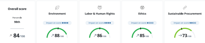 EcoVadis is a leading provider of sustainability ratings for businesses, assessing more than 150,000 companies across over 250 industries. The methodology evaluates corporate performance across four core areas: environment, labour and human rights, ethics, and sustainable procurement. EcoVadis ratings are widely used by companies globally to support transparency and sustainability performance across supply chains.