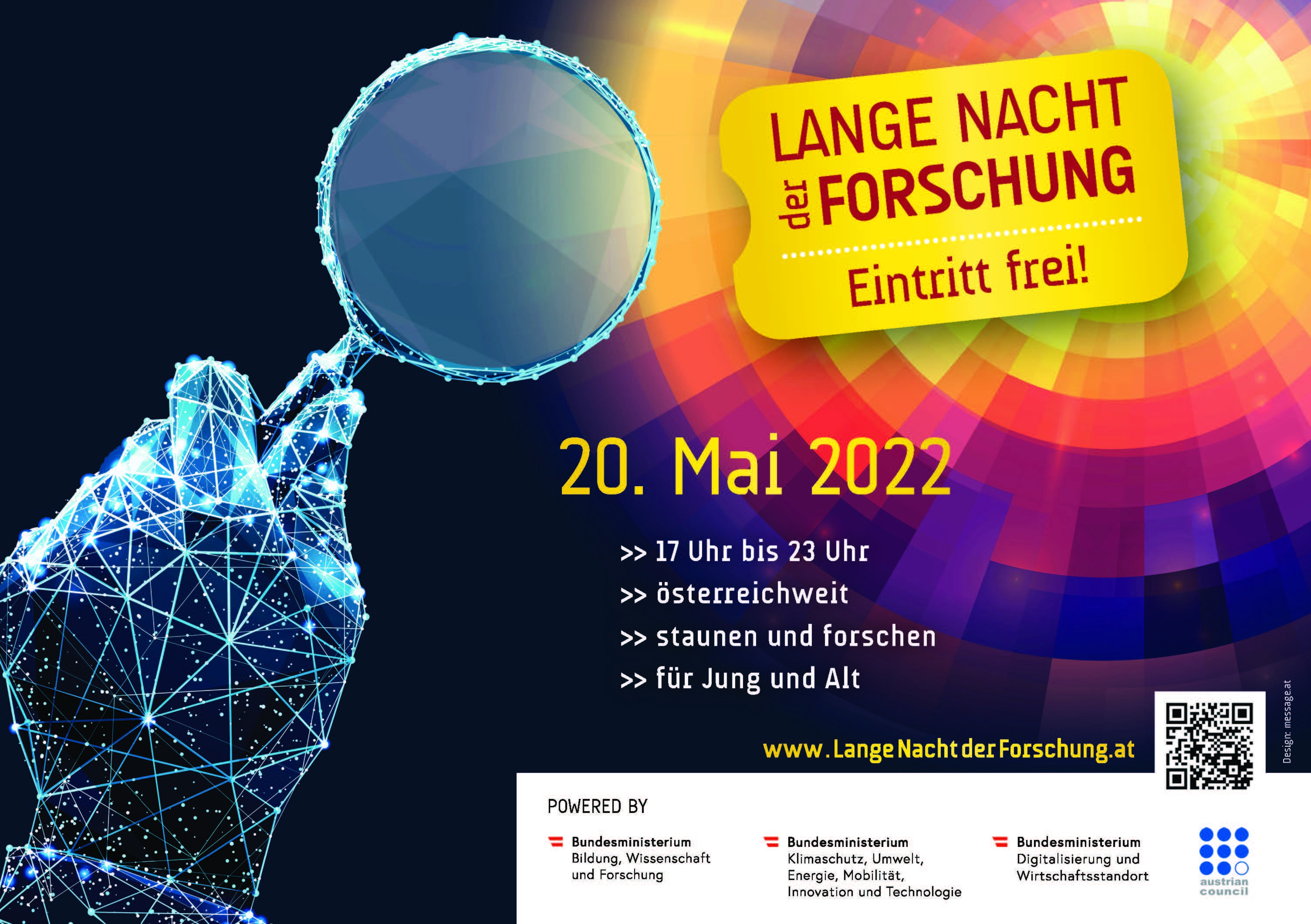 Aufgrund der aktuellen Corona-Lage werden im heurigen Jahr ab 17:00 geschlossene Touren angeboten. Die Anmeldung erfolgt über die Website der „Langen Nacht der Forschung“. Bitte beachten Sie: Die Teilnahme an der Tour ist nur im Fall einer bestätigten Anmeldung gesichert.