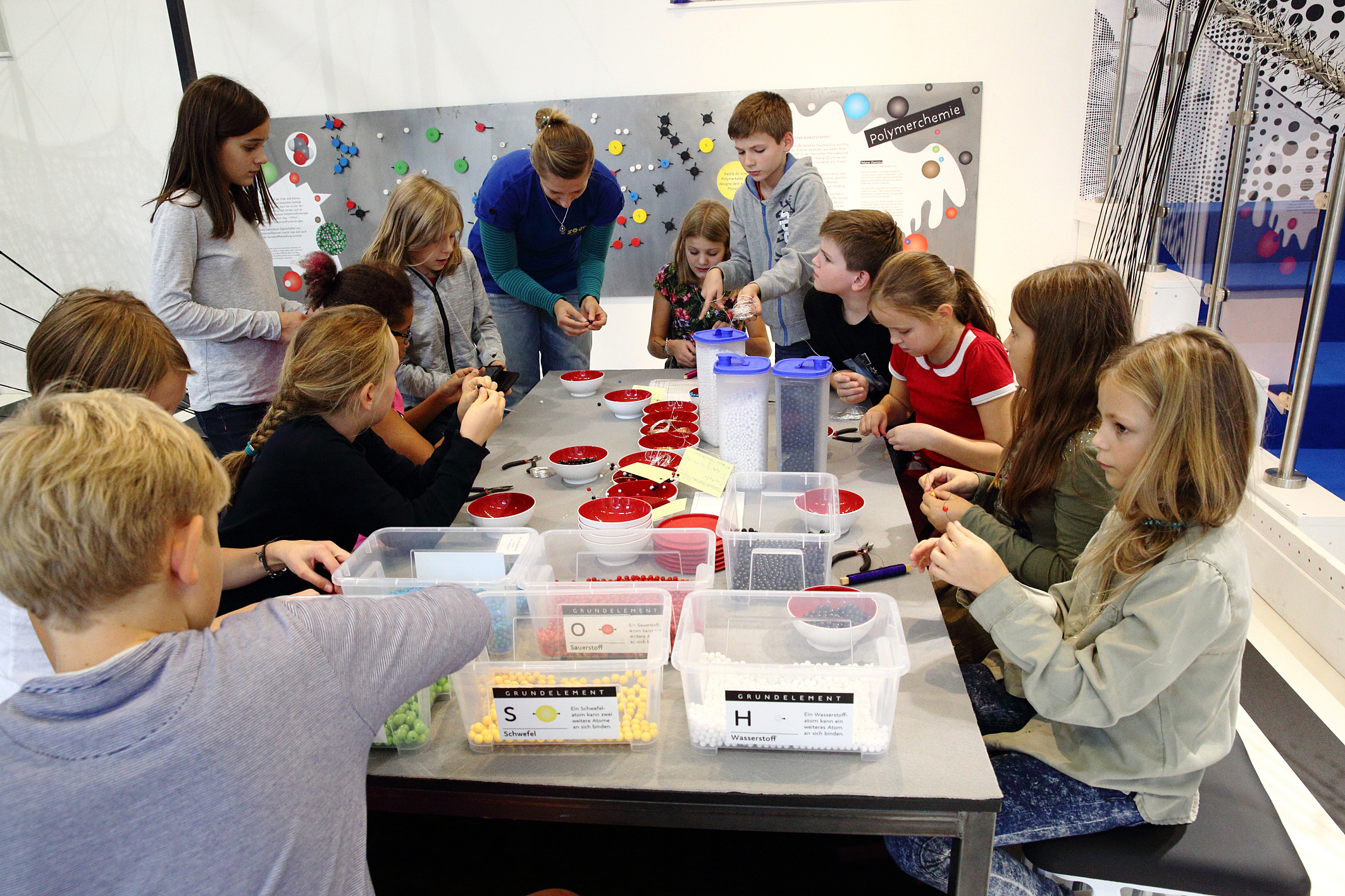 Junge Forscherinnen und Forscher in der ZOOM Mitmachausstellung Kunst | Stoff | Plastik – Woher? Wofür? Wohin?