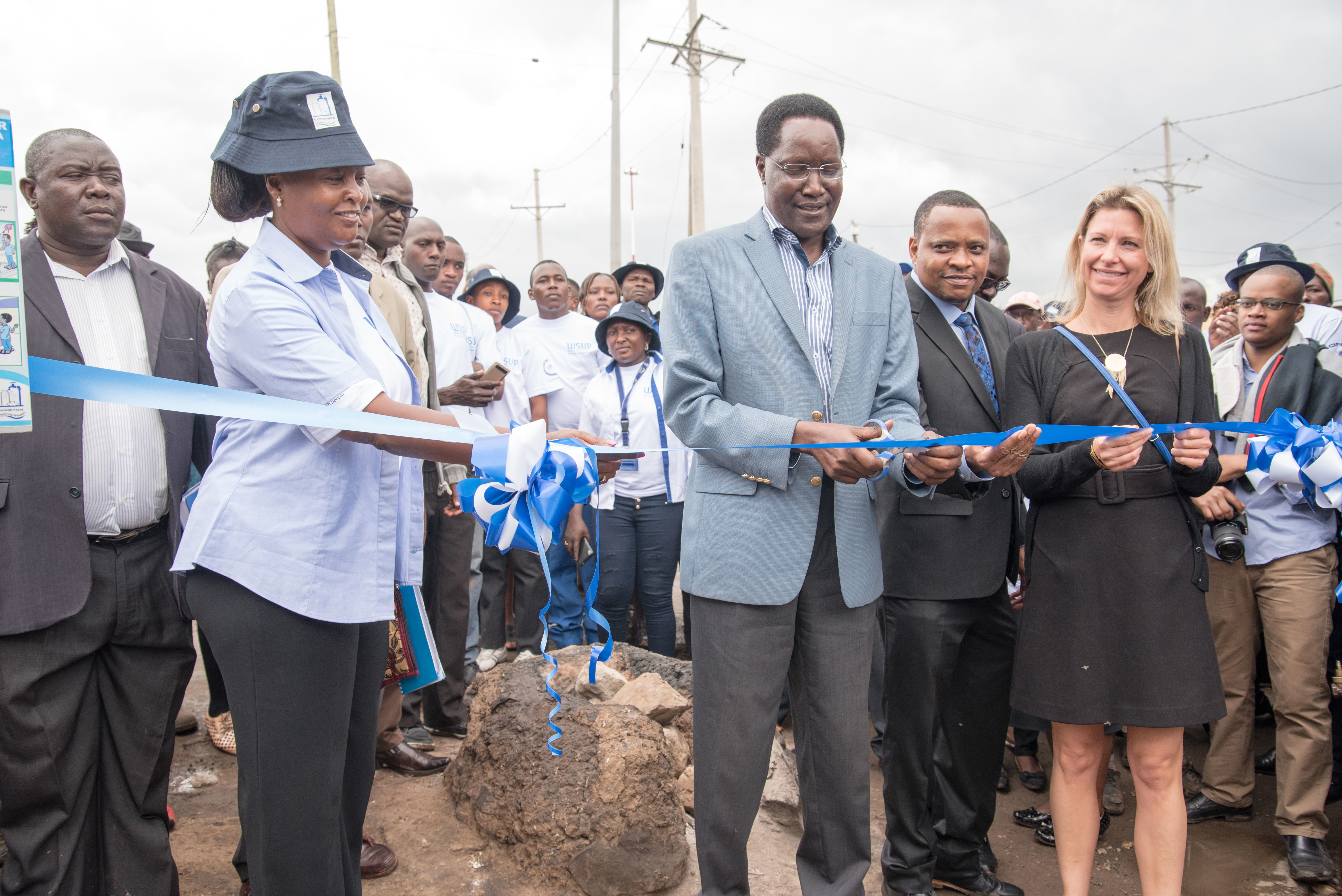 Engineer Kimori of Nairobi City County cuts the ribbon