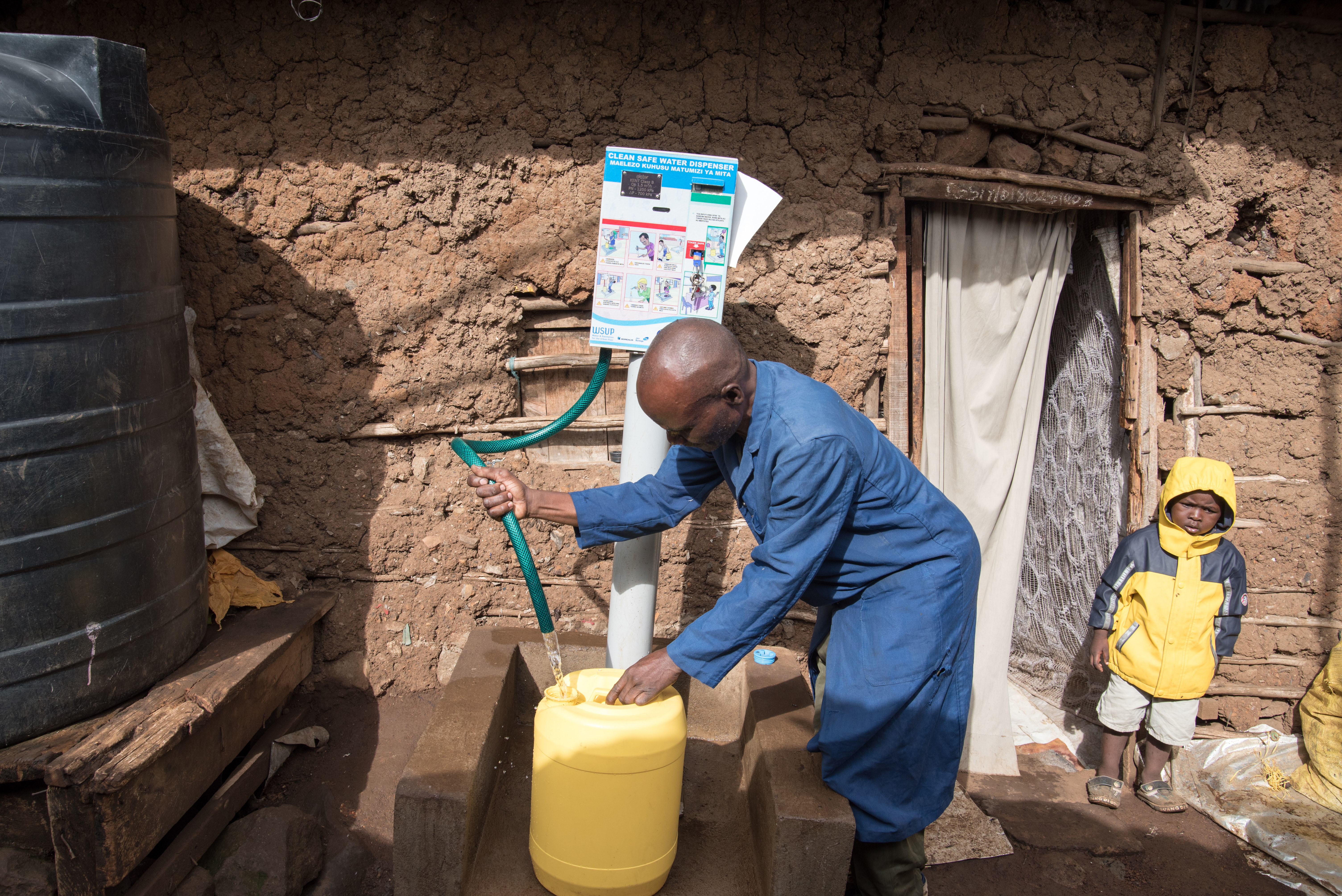 Water dispenser in use: providing safe and affordable drinking water to people in Kenya