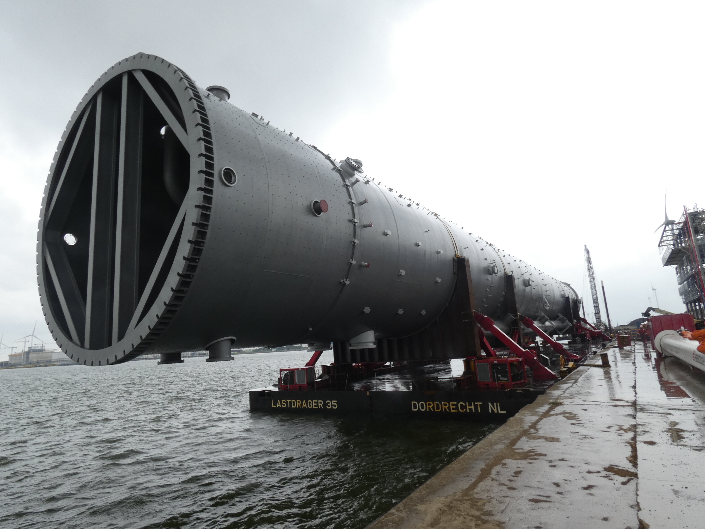 De propyleen destillatietoren zal normaal gezien maandag 8 juni vanop de kade tot bij Borealis in Kallo vervoerd worden.