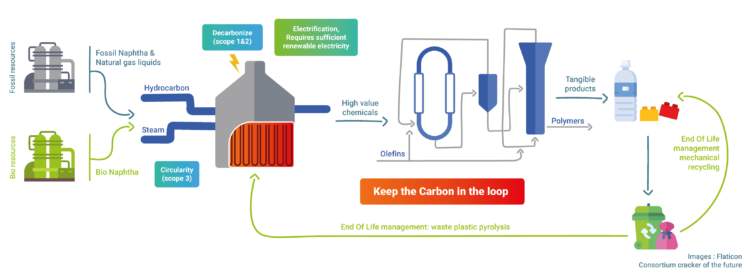 Momenteel werken Europese stoomkrakers hoofdzakelijk op de fossiele grondstof nafta en met enkele lichtere grondstoffen zoals LPG en ethaan die voortkomen uit het raffineren van olie of vloeibaar aardgas. Elektrische stoomkrakers kunnen tevens bionafta en pyrolyse-olie uit afvalplastic omzetten (chemische recycling) en daardoor essentiële procesroutes voor de circulaire economie mogelijk maken.