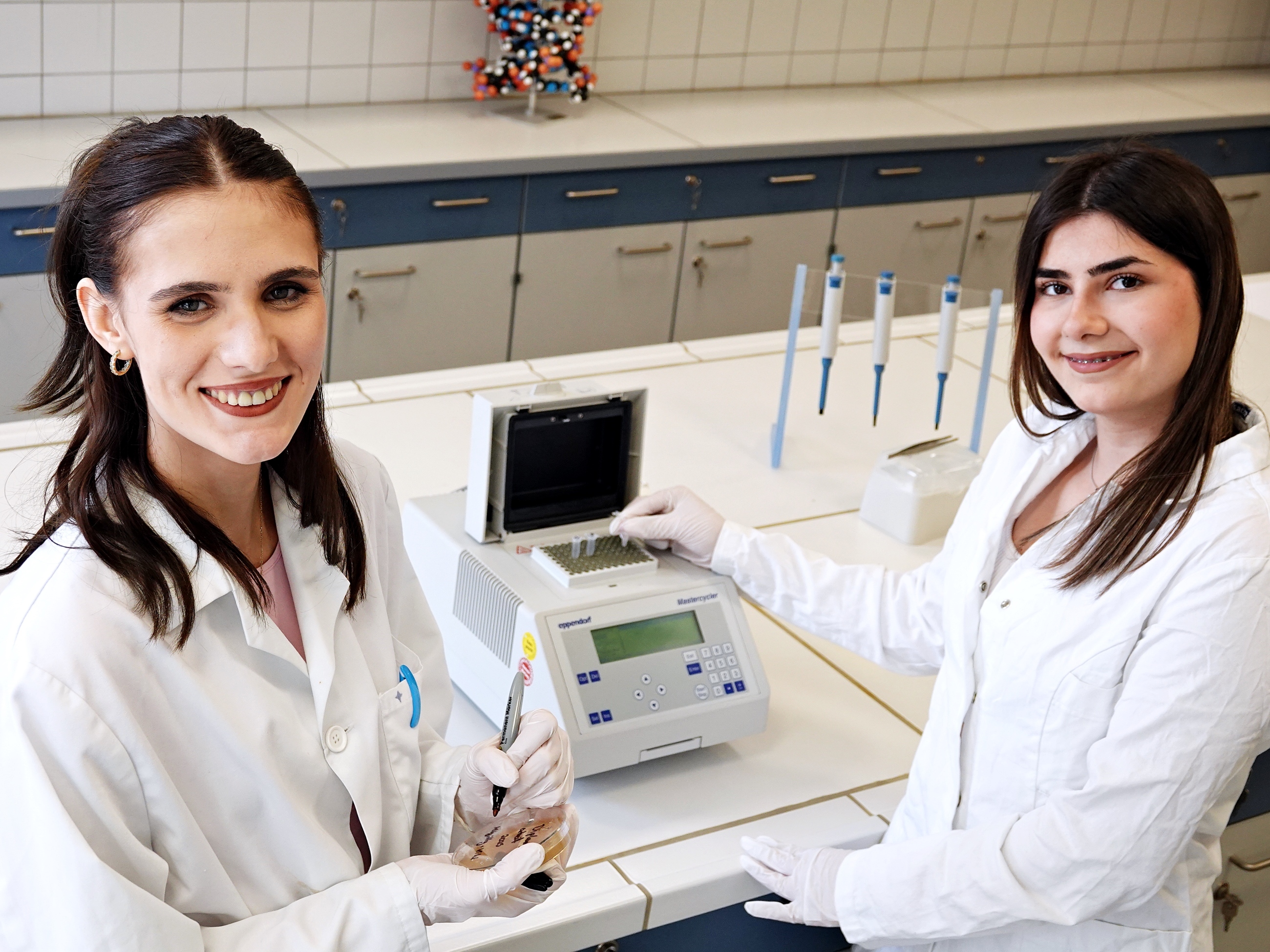 Viktoria Boga and Migitty Iskenderian impressed the expert jury with their investigation into the biodegradation of plastics by fungi. While the two students were analyzing plastic waste, they discovered a fungus that can apparently feed on plastics. They isolated this fungus and discovered that a variety of plastics can be degraded by this type of fungus. With this discovery, the two researchers secured second place.