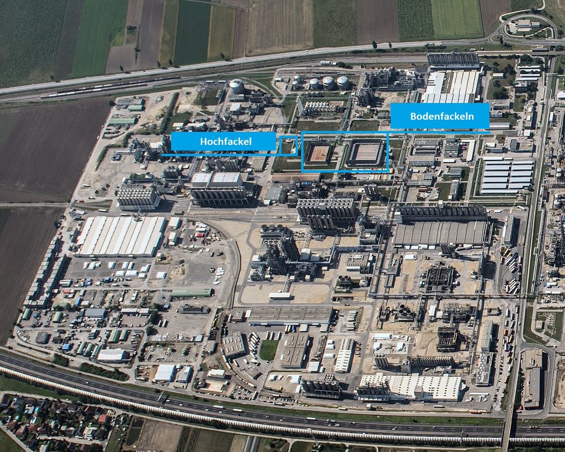 Unter einer „Fackel“ versteht man eine sehr wichtige Sicherheitseinrichtung, die auf unserem Standort immer verfügbar sein muss, um einen reibungslosen und sicheren Betrieb zu gewährleisten. Wir arbeiten mit Gas, das unter Druck in unseren Produktionsanlagen zur Erzeugung von Kunststoff verarbeitet wird. Die chemische Reaktion, die in den Anlagen stattfindet – die sogenannte „Polymerisation“ – wird von geschulten Mitarbeiterinnen und Mitarbeitern genau kontrolliert. Wird der reguläre Verarbeitungsprozess unterbrochen, muss das unter Druck stehende Gas entweichen können und die Reaktion gestoppt werden. Die Gase werden daher zur Fackel geleitet und unter Beimischung von Dampf kontrolliert verbrannt. In diesem Fall sprechen wir von einem Fackelbetrieb.